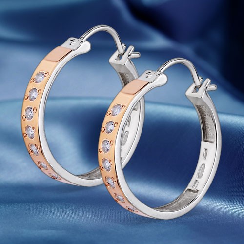 Стильные серьги из серебра 875 пробы комбинированные с золотом 375 пробы. Изделия изготовлены по специальной технологии. Украшения выглядят как из белого и красного золота, но стоят, как серебро!