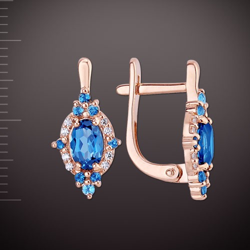 Вставки: 2 лондонских топаза (овал 6.0 х 4.0 мм 0.206 ct), 16 лондонских топаза (¢ 1.5 мм 0.064 ct), 16 сверкающих фианита ¢ 1.0 мм 0.032