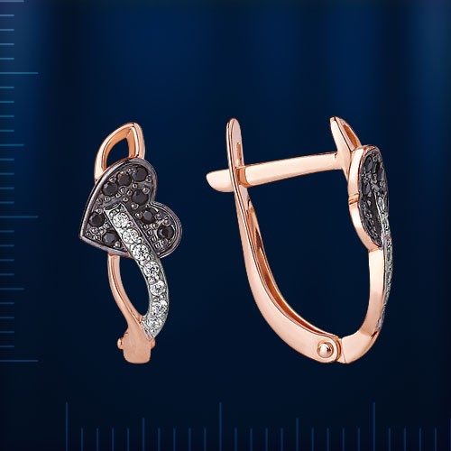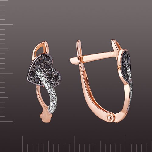 Elegante Ohrringe aus russischem Rot/Weißgold 585° mit 14 Zirkonia ¢ 1.0 mm, 16 Zirkonia ¢ 1.0 mm (schwarz)