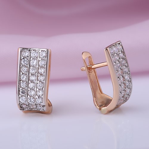 Ohrringe aus dem russischen Rotgold 585°mit 2 Fianiten ca. ¢ 1.5 mm