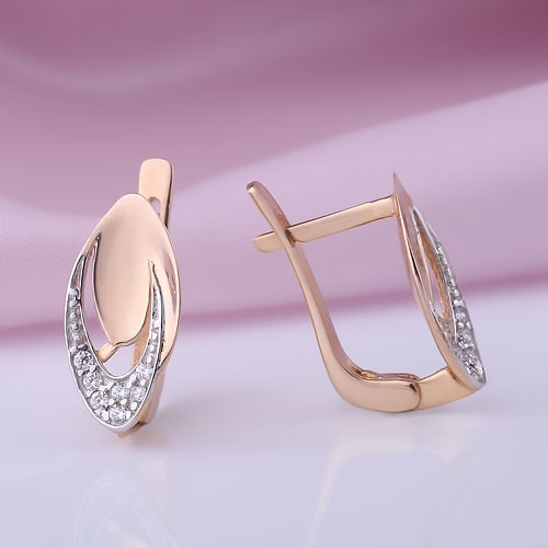 Милые золотые серьги выполнены из красного и белого