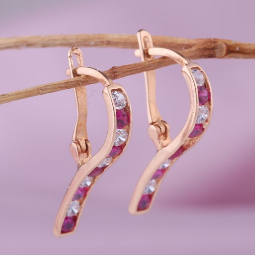 Милые золотые серьги выполнены из красного