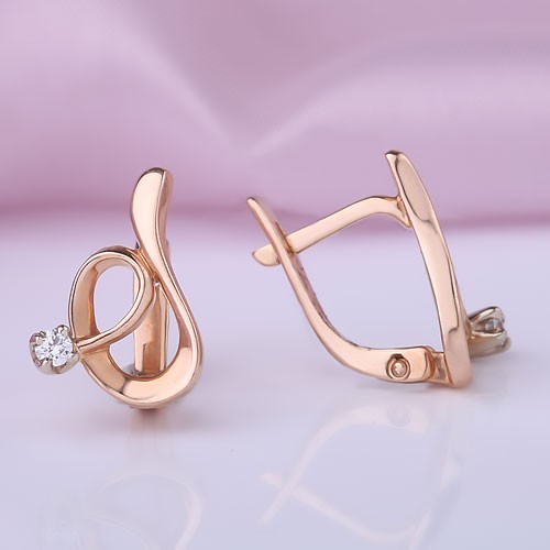 Ohrringe aus dem russischen Rotgold 585° mit 2 Fianiten ca. ¢ 2.0 mm