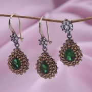 Вставка : 2 ярких фианита цвета изумруда (8.0 х 6.0 мм), сверкающие
