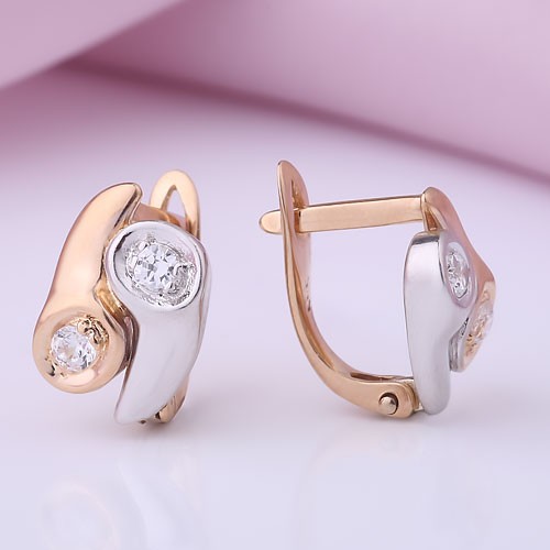 Милые золотые серьги выполнены из красного и белого
