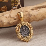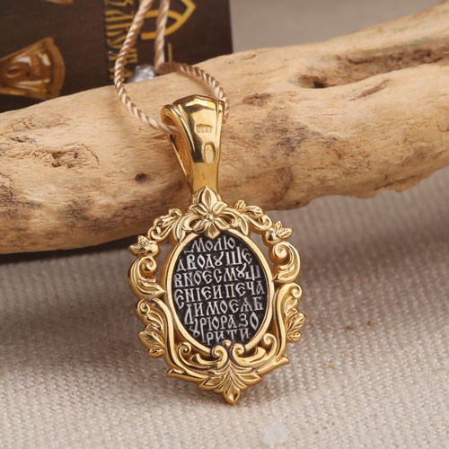 Икона Божией Матери Споручница грешных. Образок нательный из чернёного серебра 925 пробы, позолоченный 999 проба. Литьё. Ручная работа