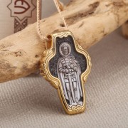 Образок Святой благоверный князь Александр Невский. Образок нательный из чернёного серебра 925 пробы, позолоченный 999 проба. Литьё. Ручная работа