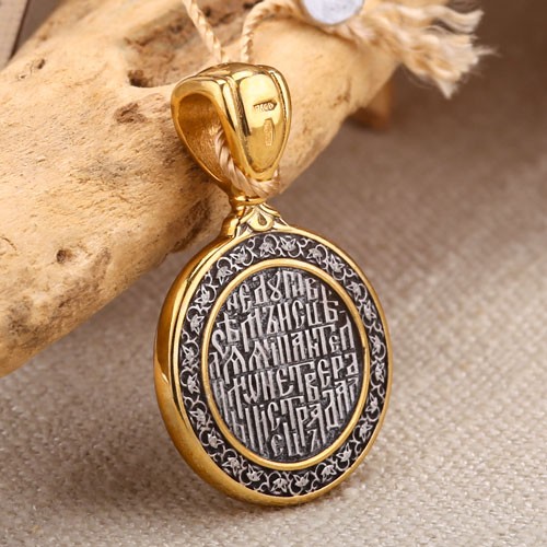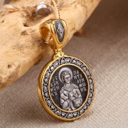 Великомученик Пантелеимон Целитель. Образок нательный из чернёного серебра 925 пробы, позолоченный 999 проба. Литьё. Ручная работа