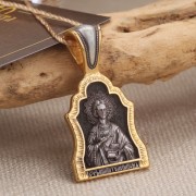 Великомученик Пантелеимон Целитель. Образок из чернёного серебра 925 пробы, позолоченный 999 проба. Литьё. Ручная работа
