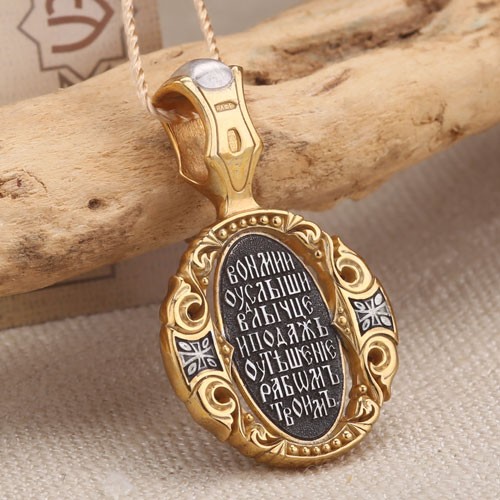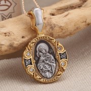 Владимирская икона Божией Матери. Образок из чернёного серебра 925 пробы, позолоченный 999 проба. Литьё. Ручная работа