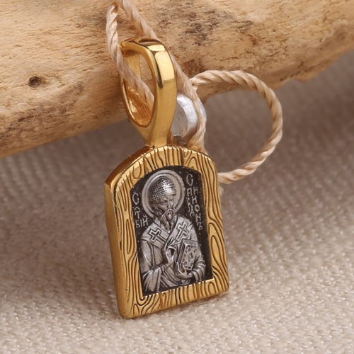 Святитель Спиридон Тримифунтский. Образок из чернёного серебра 925 пробы, позолоченный 999 проба. Литьё. Ручная работа