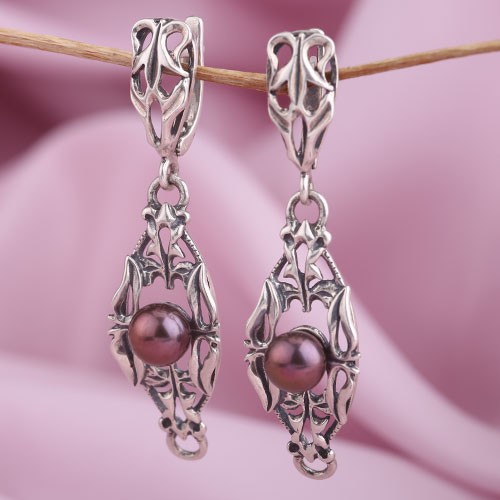 Очаровательные чувственные серьги - подвески выполнены из черненого серебра 925 пробы, украшены натуральным