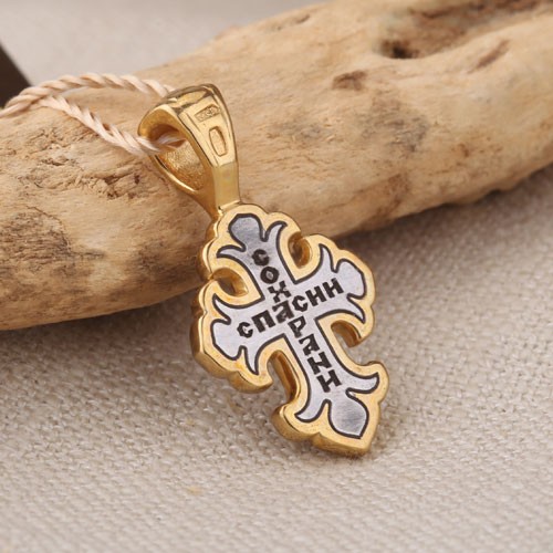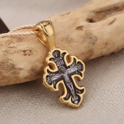 Распятие Христово. Православный крест из чернёного серебра 925 пробы, позолоченный 999 проба. Литьё. Ручная работа
