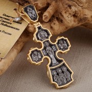 Господь Вседержитель. Архангелы Гавриил и Михаил. Три Святителя. Православный крест из чернёного серебра 925 пробы, позолоченный 999 проба. Литьё. Ручная работа