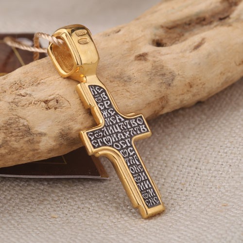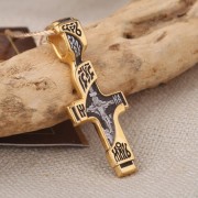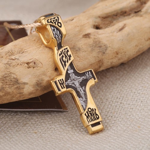 Распятие Христово. Православный крест из чернёного серебра 925 пробы, позолоченный 999 проба. Литьё. Ручная работа