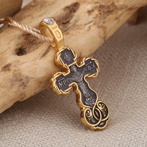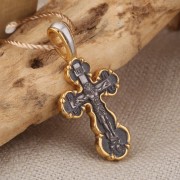 Распятие Христово. Покров Пресвятой Богородицы. Православный крест из чернёного серебра 925 пробы, позолоченный 999 проба. Литьё. Ручная работа