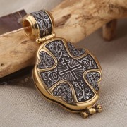 Восьмиконечный крест. Молитва Богородице. Иконы Блаженной Матроны и Божией Матери Взыскание погибших. Мощевик из чернёного серебра 925 пробы, позолоченный 999 проба. Литьё. Ручная работа