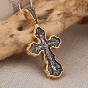 Распятие Христово. Православный крест из чернёного серебра 925 пробы, позолоченный 999 проба. Литьё. Ручная работа