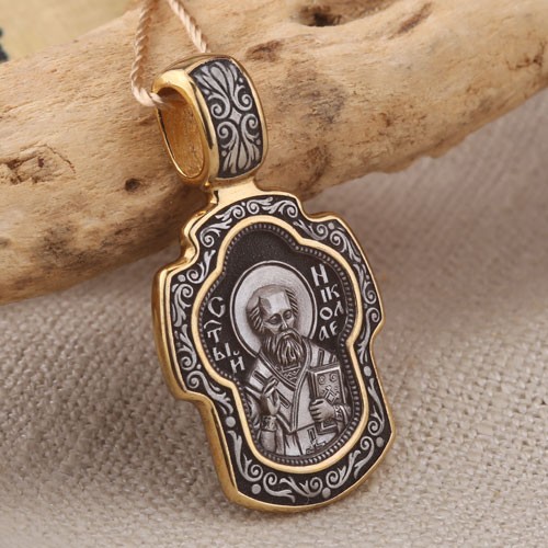 Святитель Николай. Образок из чернёного серебра 925 пробы, позолоченный 999 проба. Литьё. Ручная работа