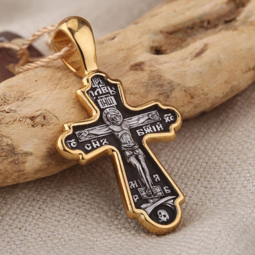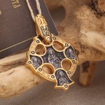 Распятие Христово. Валаамская икона Божией Матери. Православный крест из чернёного серебра 925 пробы, позолоченный 999 проба. Литьё. Ручная работа