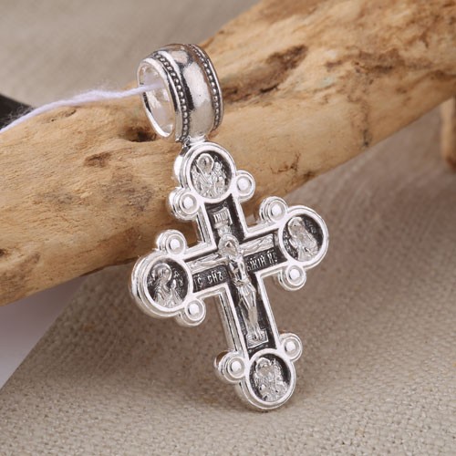 Распятие Христово. Архангелы Михаил и Гавриил. Валаамская икона Божией Матери. Александр Невский, Дмитрий Донской, Сергий Радонежский. Православный крест из чернёного серебра 925 пробыЛитьё. Ручная работа
