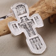 На лицевой стороне креста изображено Распятие Христово. Рядом те, кто присутствовал на Его казни: Богоматерь и Мария Магдалина слева, ап. Иоанн Богослов и сотник Лонгин справа. Вокруг Распятого Спасителя на кресте расположены иконы наиболее почитаемых на Руси святых, небесных помощников в самых разных нуждах, духовных и семейных проблемах. На горизонтальной перекладине справа и слева находятся образы святителя Николая Чудотворца и святого мученика Трифона. Вверху креста – изображение Святой Троицы. Внизу – Три Святителя Вселенских , Василий Великий, Иоанн Златоуст и Григорий Богослов. Крест обрамляет молитва. Это слова из Канона Кресту Господню: «Кресте всесильне, апостолов похвала, преподобных утверждение и верных знамение, иерархов и мучеников слава, победа и утверждение всех хвалящих тя. Кресте Честный, хранитель души и тела буди ми, образом своим бесы низлагая, враги отгоняя, страсти упражняя, и благословение даруя ми, и жизнь и силу, содействием Святаго Духа, и честными Пречистыя мольбами». На обороте креста в центре изображена икона Божией Матери «Толгская», великая чудотворная святыня Ярославской земли. Вверху Богородицу осеняет Ангел-Хранитель. Образ его служения представлен на иконе внизу «Ангел-Хранитель ведет душу человека». Слева и справа – образы величайших святых христианской Церкви прп. Сергия Радонежского и свт. Спиридона Тримифунтского. По краю написаны слова молитвы Пресвятой Богродице: «Не ввери мя человеческому предстательству, Пресвятая Владычице, но приими моление раба Твоего: скорбь бо обдержит мя, терпети не могу демонскаго стреляния, покрова не имам, ниже где прибегну окаянный, всегда побеждаемь, и утешения не имам, разве Тебе, Владычице мира, упование и предстательство верных, не презри моление мое, полезно сотвори».