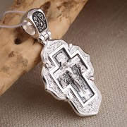 Распятие Христово с предстоящими. Покров Пресвятой Богородицы. Серафимы. Православный крест из чернёного серебра 925 пробы. Литьё. Ручная работа