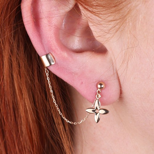 Серьга красиво обвивает ушную раковину и крепится на мочке при помощи специального зажима. Украшение хорошо тем, что не растягивает мочку, а вес серьги равномерно распределяется по всей поверхности уха. Сморится такое украшение необычайно эффектно!