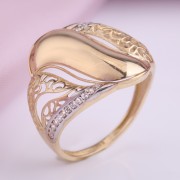 Желтое золото Золотое кольцо купить с фианитами. Желтое золото с акцентами из белого золота 585 пробы. Стильное изящное золотое кольцо, украшеное сверкающими фианитами!