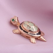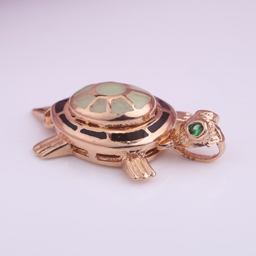 русского золота 585°с подвижной головой и хвостиком. Панцирь оформлен зелёной и черной эмалью, глаза черепашки украшены зелеными