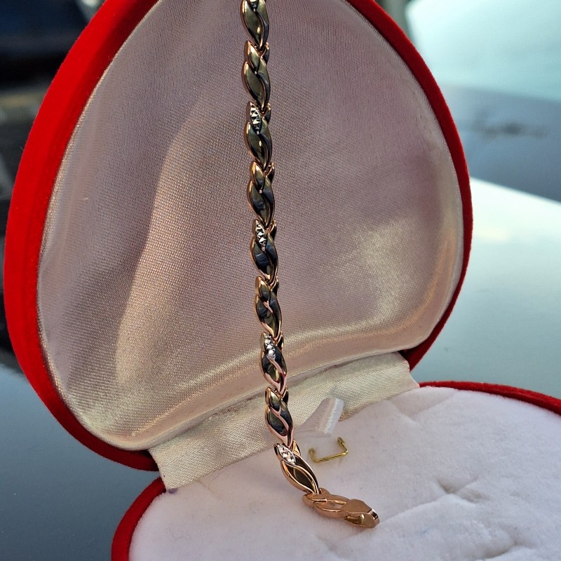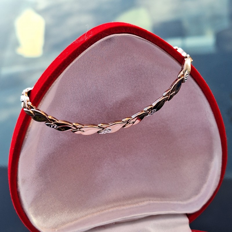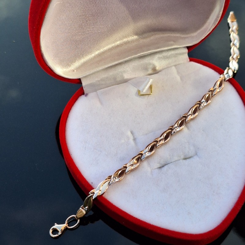 Rotgold des 585er-Standards mit Akzenten aus Weißgold mit Diamantschliff. Eine wunderbare Dekoration für Ihr Handgelenk. Dieses Produkt unterstreicht Raffinesse und ein ausgeprägtes Stilgefühl!
