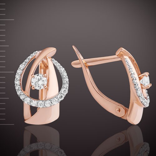 Милые золотые серьги выполнены из красного и белого русского золота 585° пробы и украшены сверкающими фианитами!