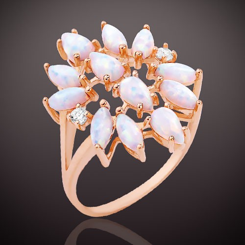 Rotgold 585° verziert mit Opalen und funkelnden Zirkonia. Dieser schillernder Ring wird Sie mit Schönheit und Eleganz begeistern!