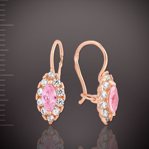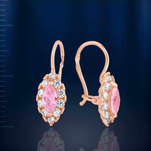 Вставка : 2 розовых фианита 7.0 х 3.0 мм, сверкающие