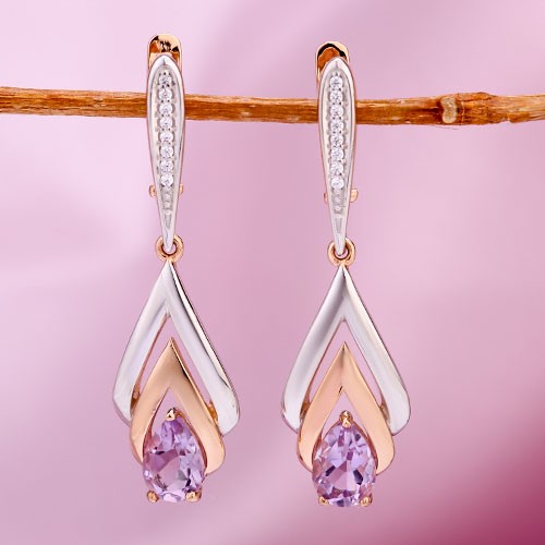 аметиста в серьгах - подвесках из красного и белого