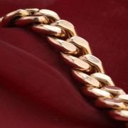 Желтое золото 585 пробы. Объемный шикарный браслет выполнен с надежным вдвижным замком с дополнительным предохранителем.