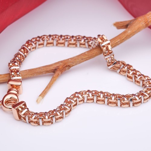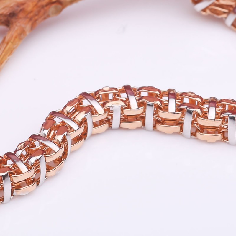 Превосходный браслет выполнен из классического красного и белого золота 585 й пробы с использованием особых передовых технологий, что позволяет при видимости объема достичь довольно малого веса, а значит и сопоставимо малую стоимость. Данное изделие подчеркнёт Вашу высокую утонченность и глубокое чувство стиля!