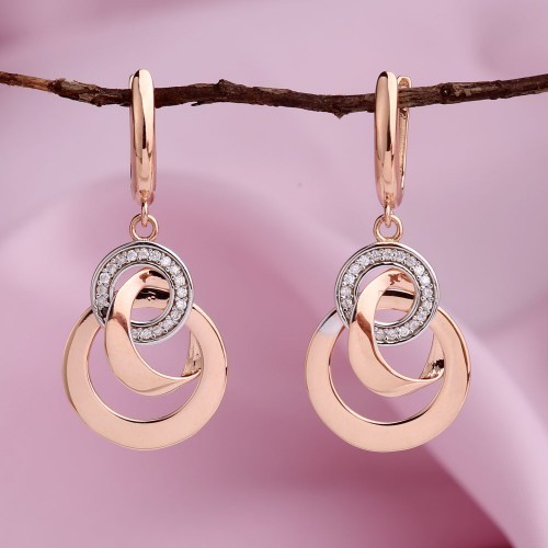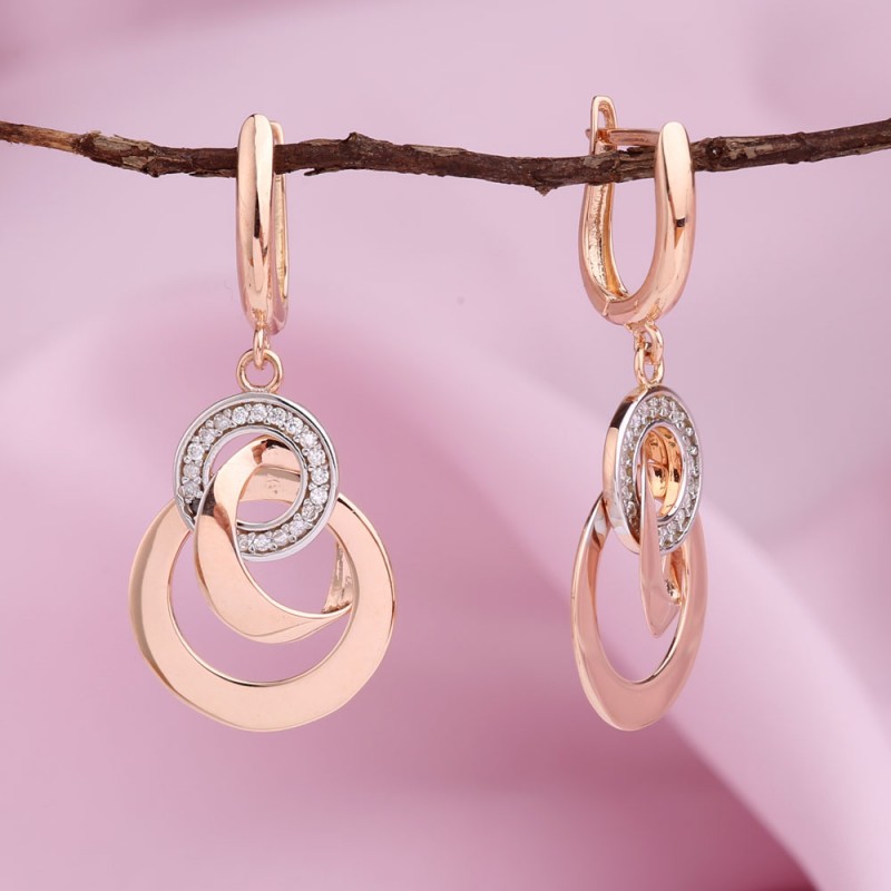 Ohrhänger aus dem russischen Rot/Weißgold 585 Probe mit Fianiten ¢ 1.0 mm