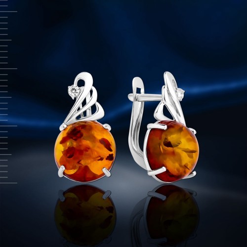 янтарь ¢ 12.0 мм, 2 фианита ¢ 1.5 мм