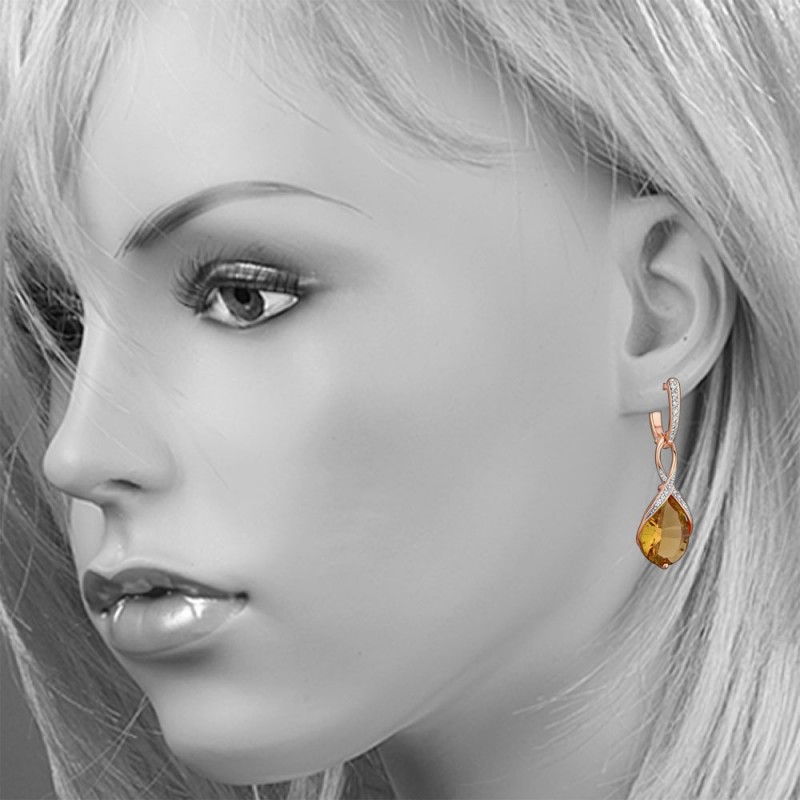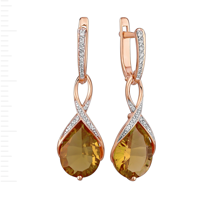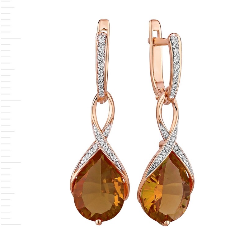 Ohrringe aus Rotgold 585 Probe verziert mit 2 Sultanit 12.0 x 8.0 mm, 50 Fianiten 0.057 mm