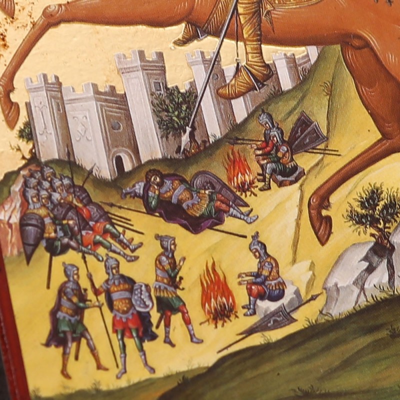 Икона делается при монастыре. Соответствует православным канонам. Высококачественная ультрафиолетовая печать. Используются краски, устойчивые к выцветанию. Сверху - защитный лак. Сюжет обрамлен чеканой рамкой. Иконы данной коллекции отличаются четкостью линий изображения и сочностью красок