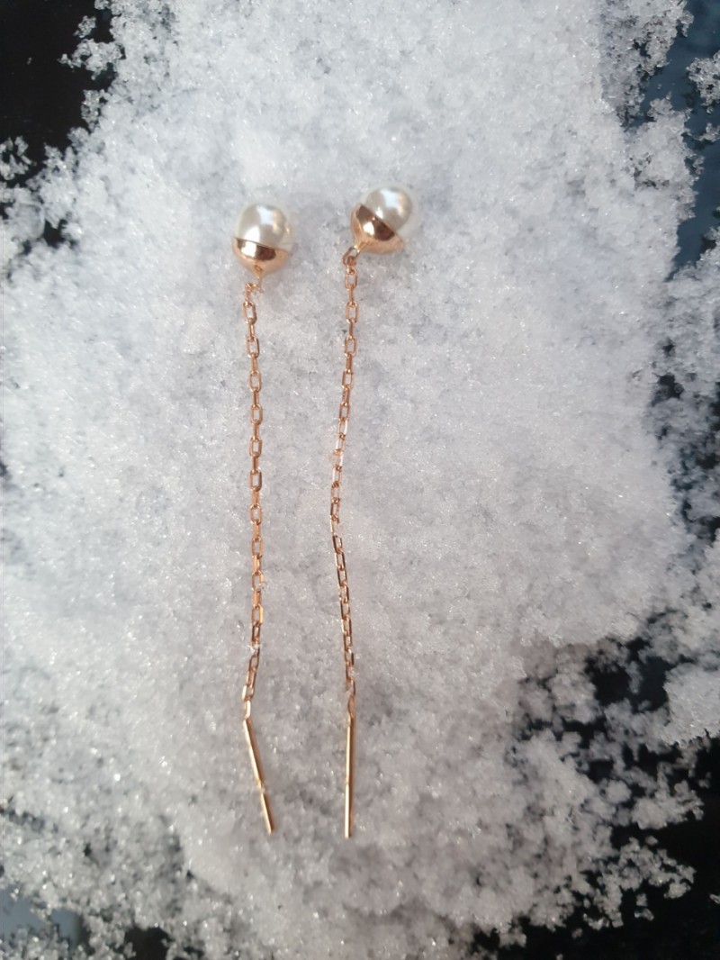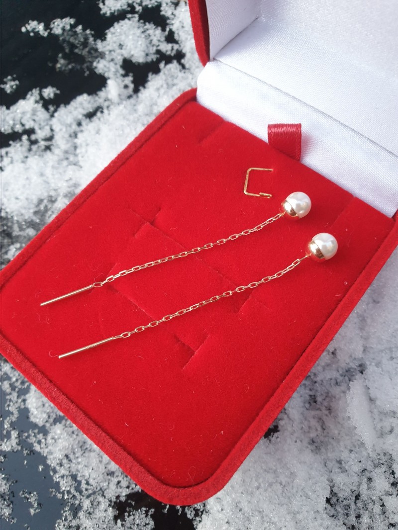 Ohrhaenger aus rotem russischen Gold 585°. Insert: Perlen. Laenge: 50mm