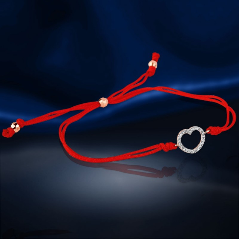 фианитами на красной шелковой нити из золота 585 пробы принесет большую любовь в вашу жизнь!