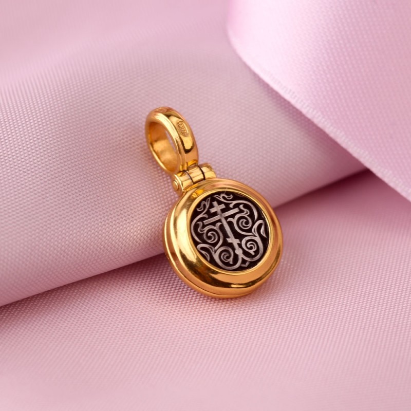 Образок из чернёного серебра 925 пробы, позолоченный 999 проба. Литьё. Ручная работа