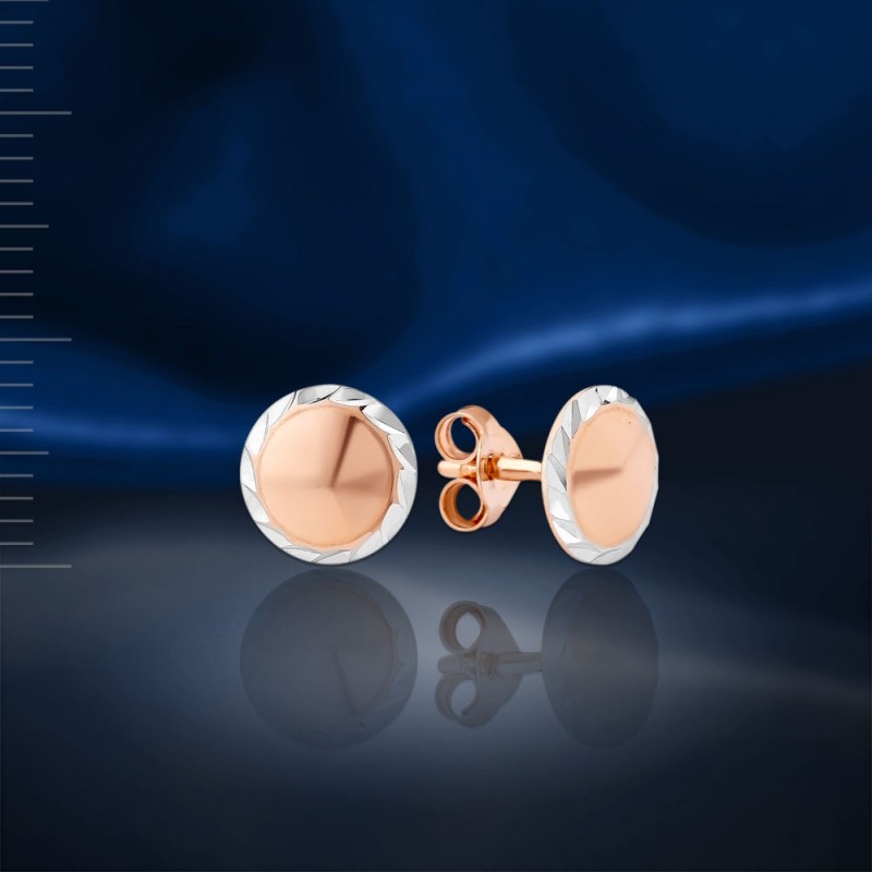 Золотые серьги - пусеты из красного и белого