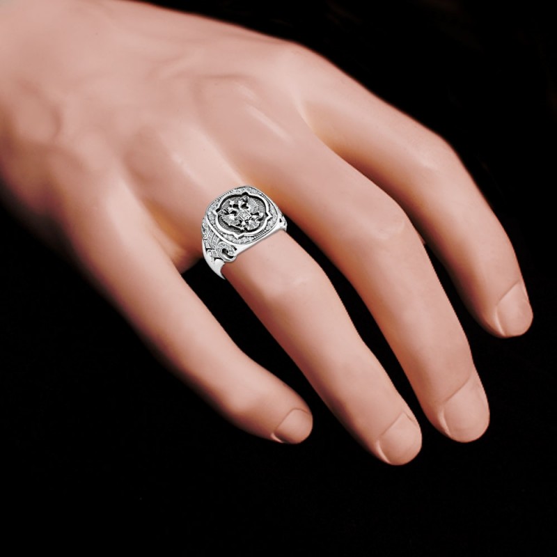 Ein Herrenring ist ein Accessoire, das den richtigen Eindruck über Ihren Besitzer hinterlassen und seinen guten Geschmack betonen kann! Das Siegel ist einer der ältesten Schmuckstücke, der in der Neuzeit ein Zeichen von Solidität und hohem sozialen Status des Besitzers ist. Ein solches Accessoire hilft, einen spektakulären Eindruck auf die Damen zu machen, denn jede Frau möchte einen starken und selbstbewussten Mann vor sich sehen! Dieses Produkt verleiht dem Bild eines jeden Mannes Eleganz. Eine großartige Geschenkoption für einen Ehemann, Vater, Großvater oder Bruder!