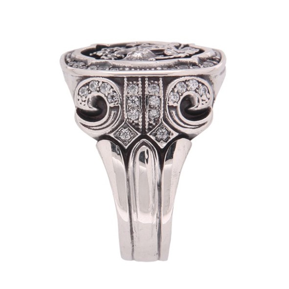 Solider Herrenring - Siegelring, aus 925er Silber, verziert mit funkelnden Kubikzirkonia. Auf der inneren geschlossenen Oberfläche des Rings befindet sich ein Stempel mit der Silberprobe.