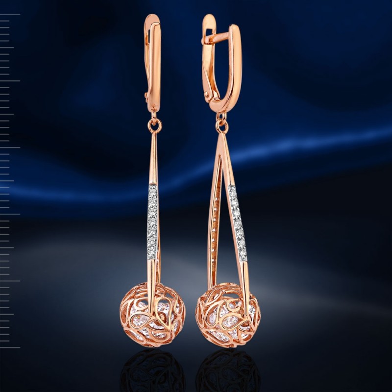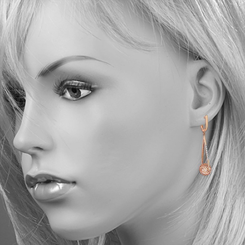 родированным покрытием. Подвеска выполнена в виде капли с шариком, наполненного сверкающим кубическим цирконием и вращающегося вокруг своей оси!