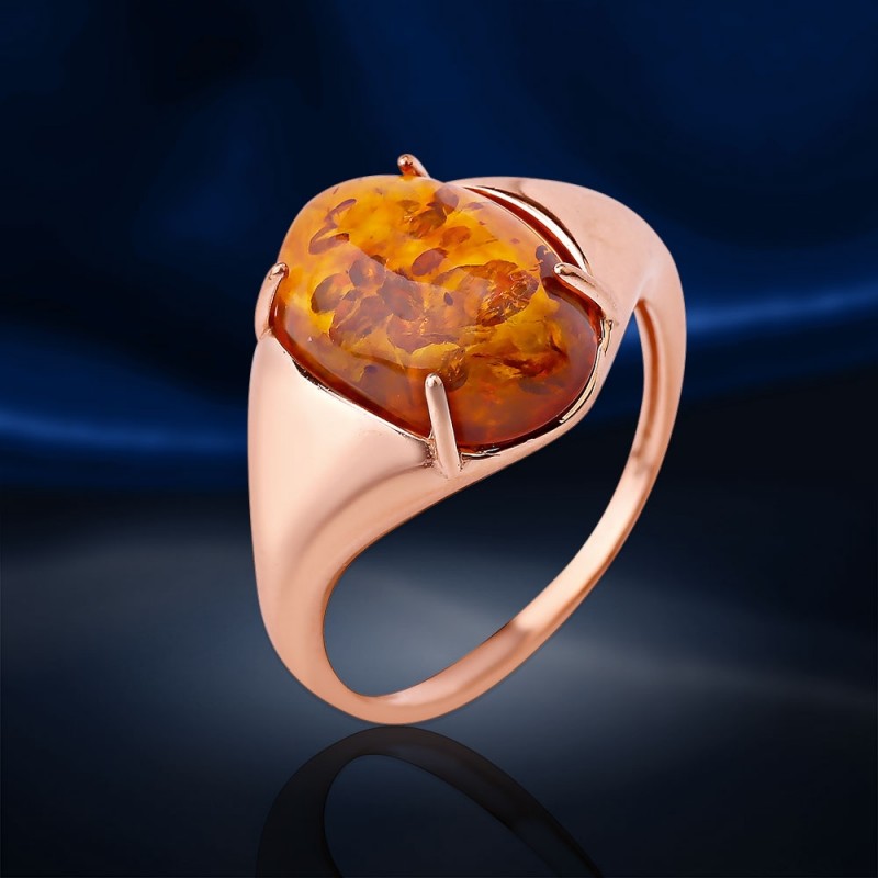 Eleganter Ring aus 925er Silber, vergoldet, verziert mit Bernstein, mit diesem erstaunlichen "Stück der Sonne", in allen Schattierungen der Honigfarbe, begeistert und erfreut Sie dank seiner Schönheit!