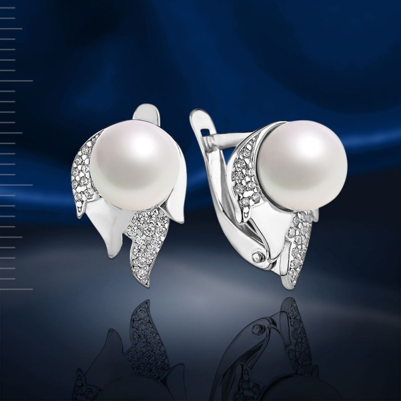 Einsätze : 40 Zirkonia ( Ø 1,0 mm), 2 weiße synthetische Perlen ( Ø 8.0 мм )